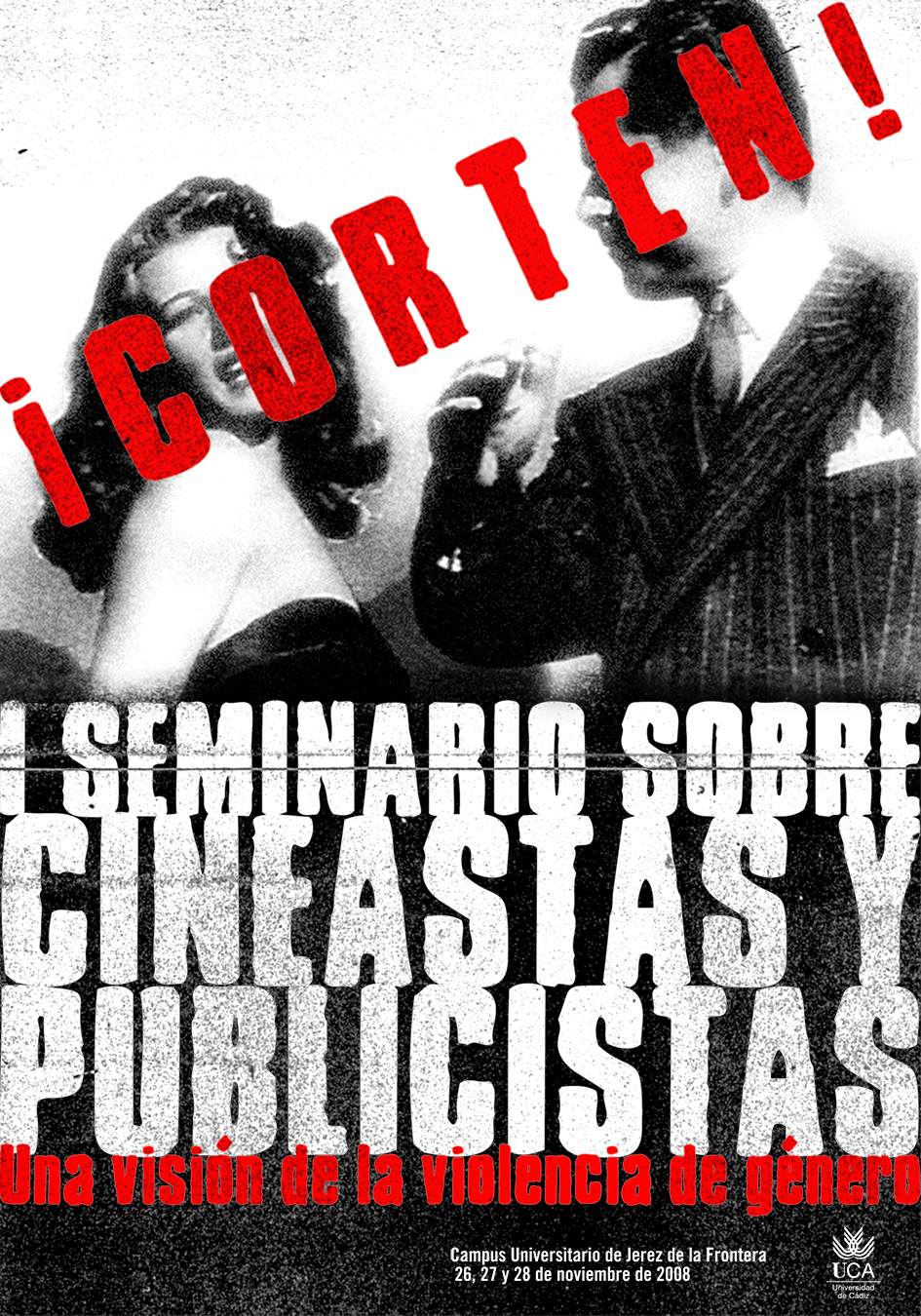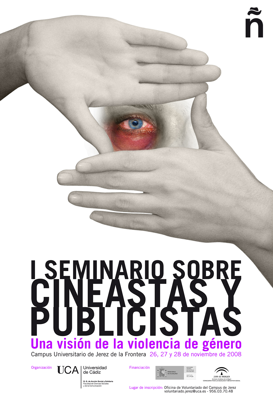 Carteles diseñados para el I Seminario sobre Cineastas y Publicistas, Una visión de la violencia de género para la Universidad de Cádiz. Fue elegido el cartel de las manos que encuadran el ojo herido.