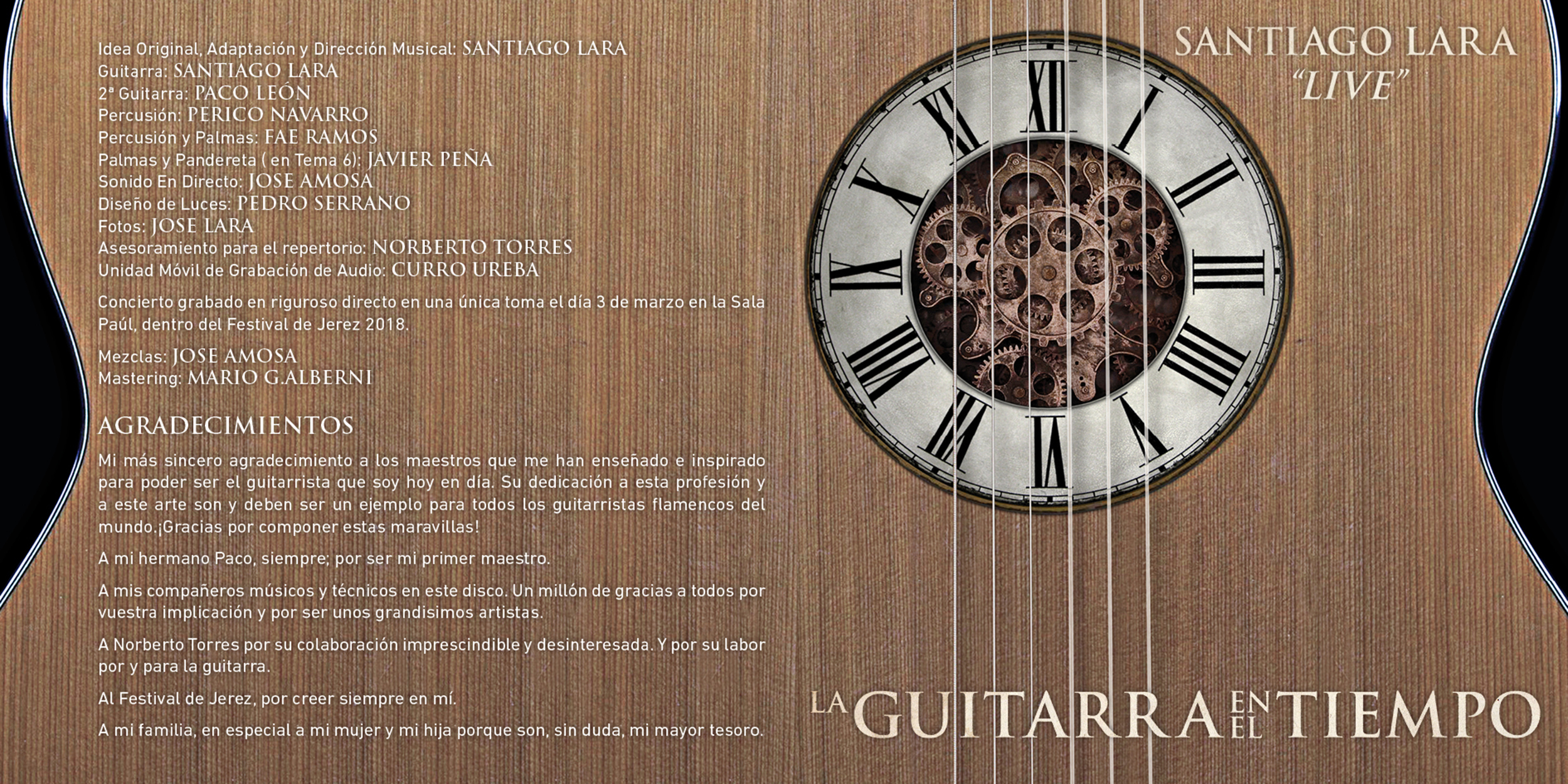 Diseño para el disco del guitarrista Santiago Lara grabado en directo el 3 de marzo de 2018 en la Sala Paúl de Jerez, dentro del Festival de Jerez 2018.